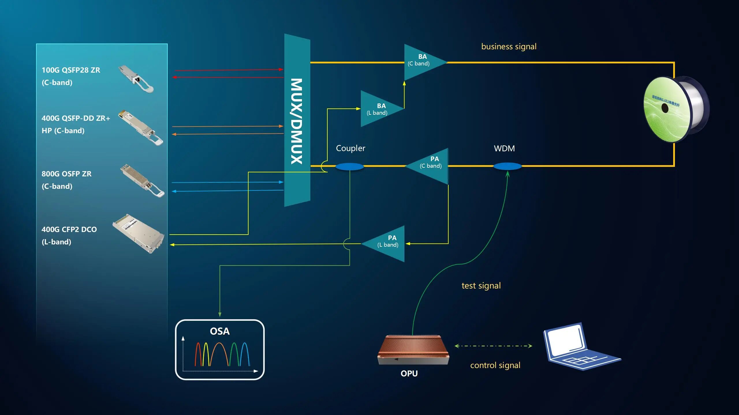面对800G相干技术“规模应用”的核心需求,光迅科技的全系列相干产品实现了对不同场景、不同带宽需求的全面覆盖——从100G QSFP28 ZR,到满足长距高速传输的400G QSFP-DD ZR/ZR+与400G CFP2-DCO(L-band)(创新性拓展4.8THz可用频率,在不增加功耗的前提下提升城域网络容量),再到引领未来的800G OSFP ZR,每一款产品均融入光迅科技对行业需求的深刻理解。这套产品矩阵无需场景化“拼凑”,可广泛应用于从运营商到互联网厂商、从边缘接入到核心骨干网等多种应用场景,完美契合规模部署阶段“全场景适配、高效率落地”的核心诉求。