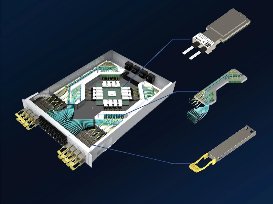 采用 32×200G 架构,面向下一代更高带宽密度光互连场景,体现光迅科技在硅光NPO技术路线上的持续演进与产品布局能力。