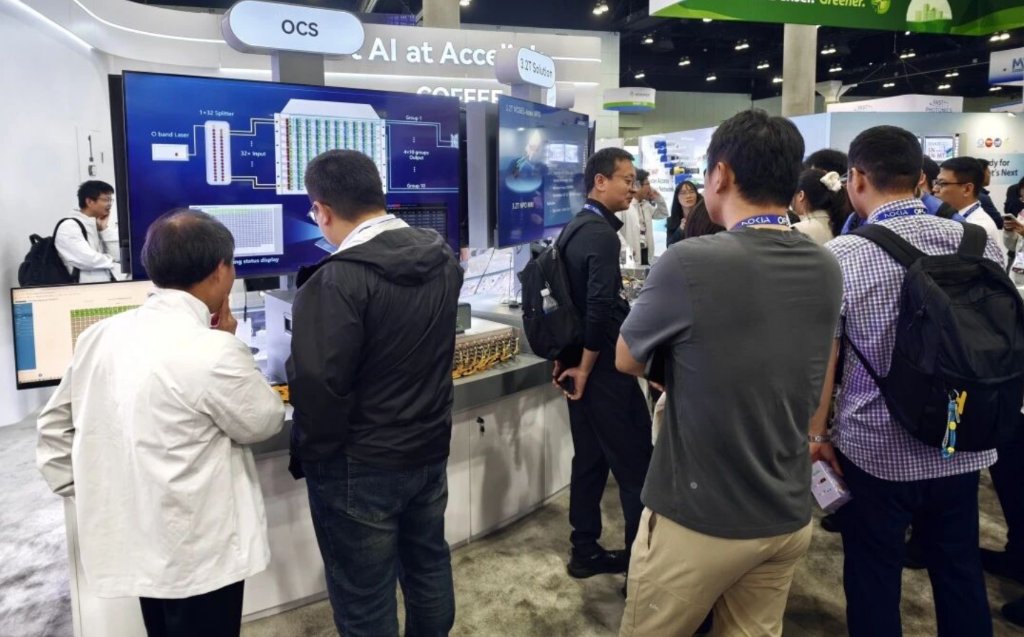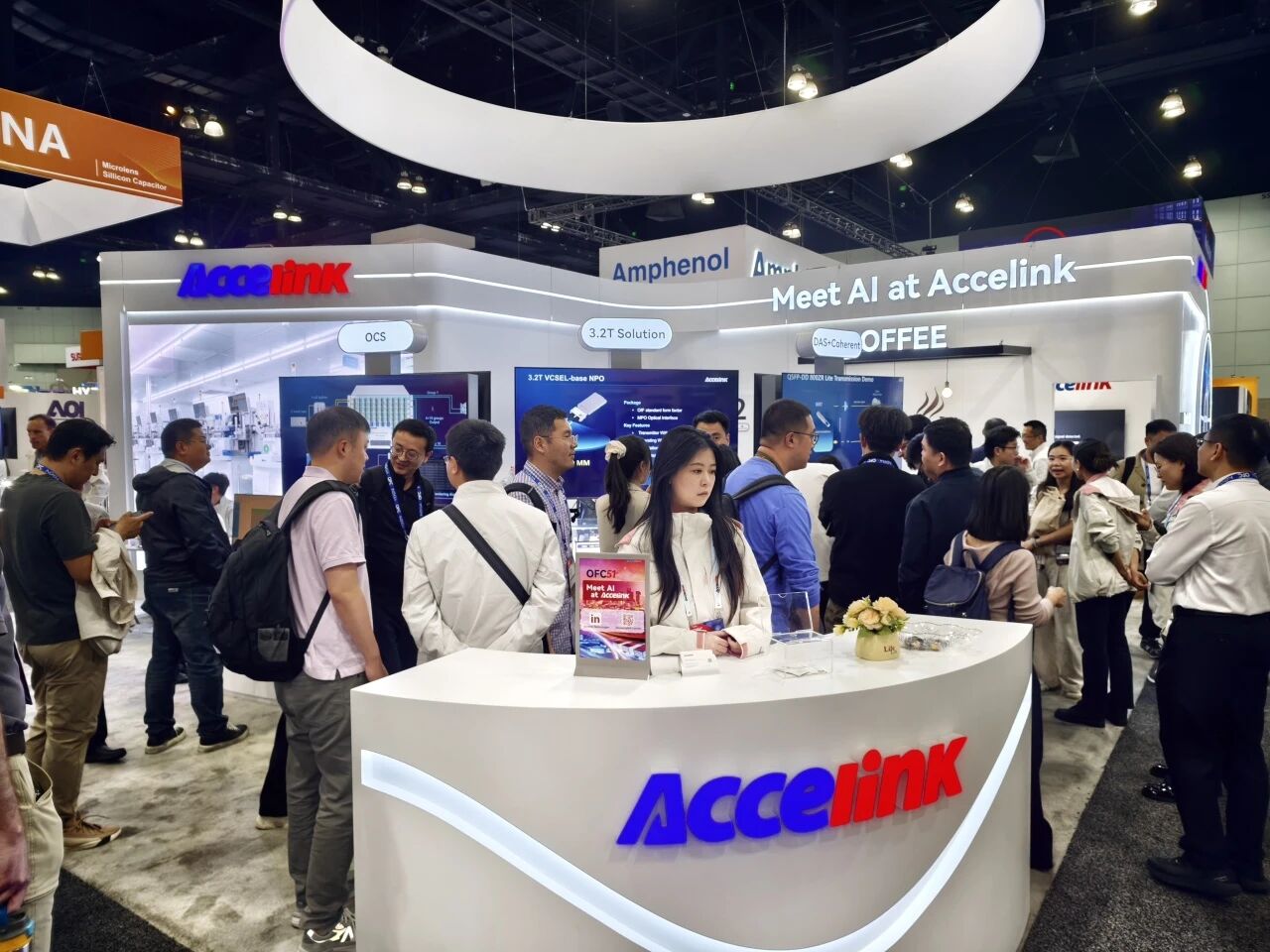 当地时间3月17日,在美国洛杉矶举办的 OFC 全球光通信盛会上,光迅科技以“Meet AI at Accelink” 为主题重磅登场,现场展示包含3.2T NPO、320×320 OCS全光交换、800G ZR Lite光模块的全栈光互连解决方案,全面覆盖集群内部互联、跨集群互联、算力调度等关键场景,为全球AI基础设施突破算力瓶颈,交出了一份完整答卷。